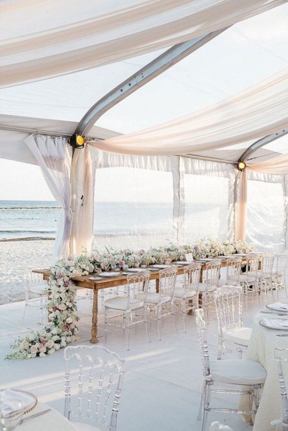 3. Playa. Si eres totalmente romántica y te encanta el sol, arena y mar, no hay mejor escenario para tu boda que la playa. Las recepciones bajo este concepto, son especiales para bodas de noche, comenzando con las ceremonias, ya sean religiosas, civiles u otras, desde el atardecer. Son esos mismos escenarios naturales que te permiten una decoración mucho más creativa, logrando que tu evento sea aún más original.